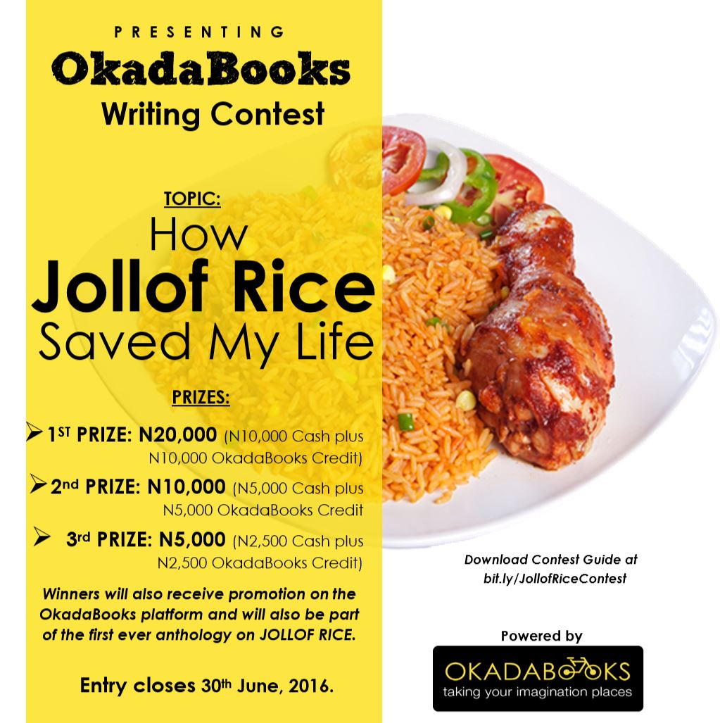 Additionally, winners will be promoted on the OkadaBooks platform and will be part of the first ever anthology on JOLLOF RICE.