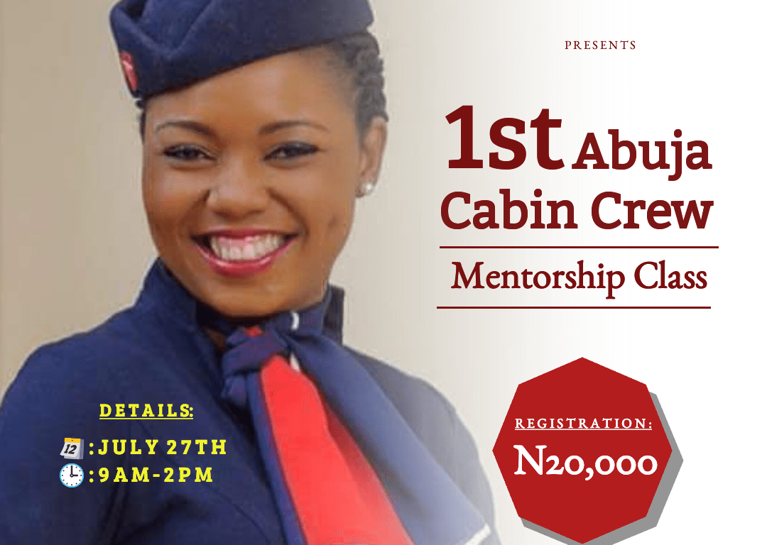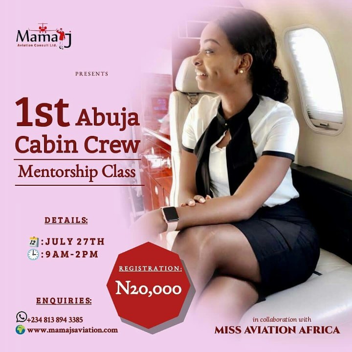 Then let your dreams take flight! Register for the Abuja Cabin Crew mentorship class organised by Mamaj Aviation Consult Limited in collaboration with Miss Aviation Africa.