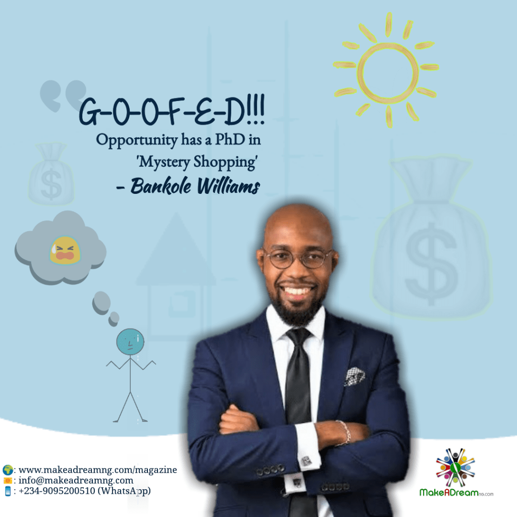 3 thoughts on “Goofed! Opportunity has a PhD in ‘Mystery Shopping’ – Bankole Williams”