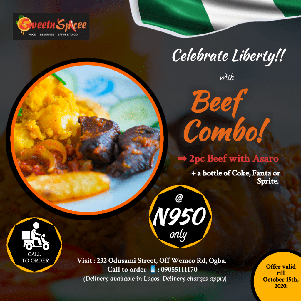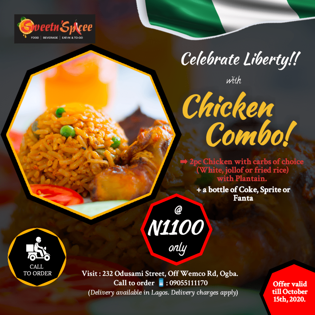 Pamper your taste buds and Celebrate Liberty this Independence with Beef, Chicken or Fish Combo from Sweet n Spicee Bistro, a budding Fast-food restaurant in Ogba Ikeja, Lagos.