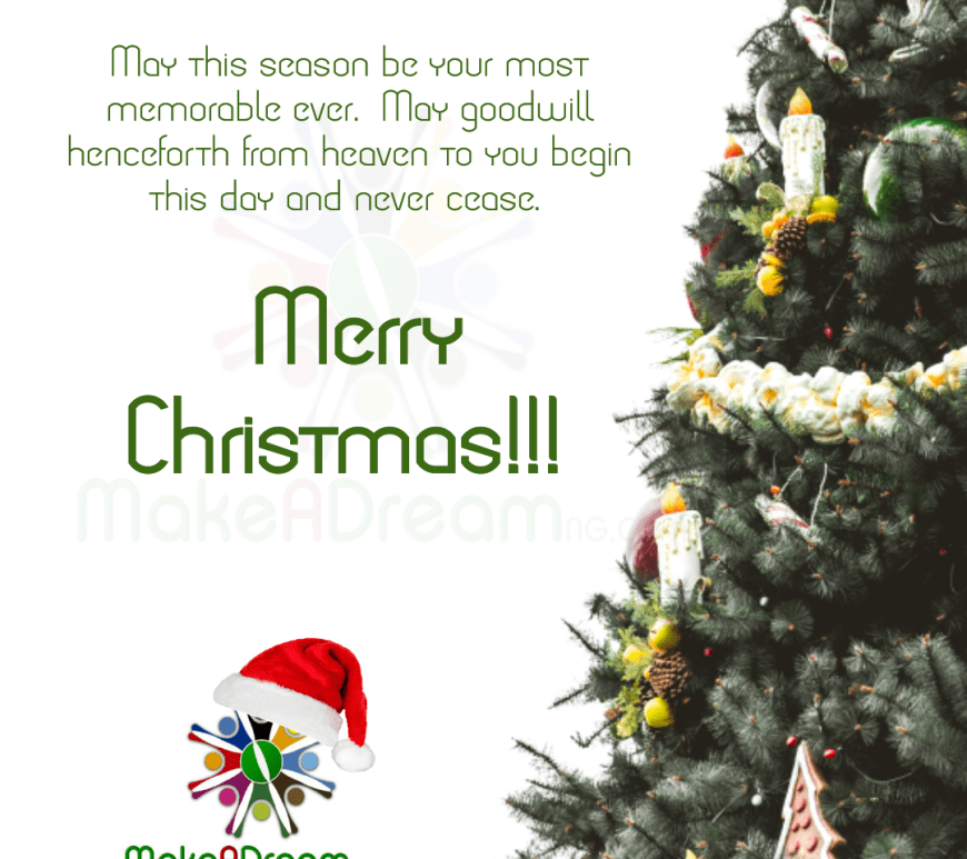 May the Reason for the season make this Christmas be your most memorable ever. May goodwill henceforth from heaven to you begin this day and never cease. Merry Christmas from all of us at MakeADreamNG.com 💕 . Please click hereto enjoy our special Christmas blog post, just for you. Featured: You Really Should Have a Wish List THIS Christmas Continue reading Merry Christmas from all of us at MakeADreamNG.com